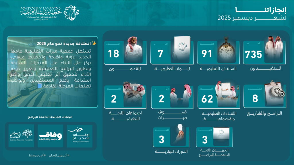انضم إلى جمعية ميراث التعليمية، حيث نؤمن بأن التعليم والبحث هما المفتاح لبناء مستقبل مشرق. معًا، نصنع الابتكار وندعم التميز الأكاديمي لتحقيق تأثير إيجابي ومستدام في مجتمعنا.