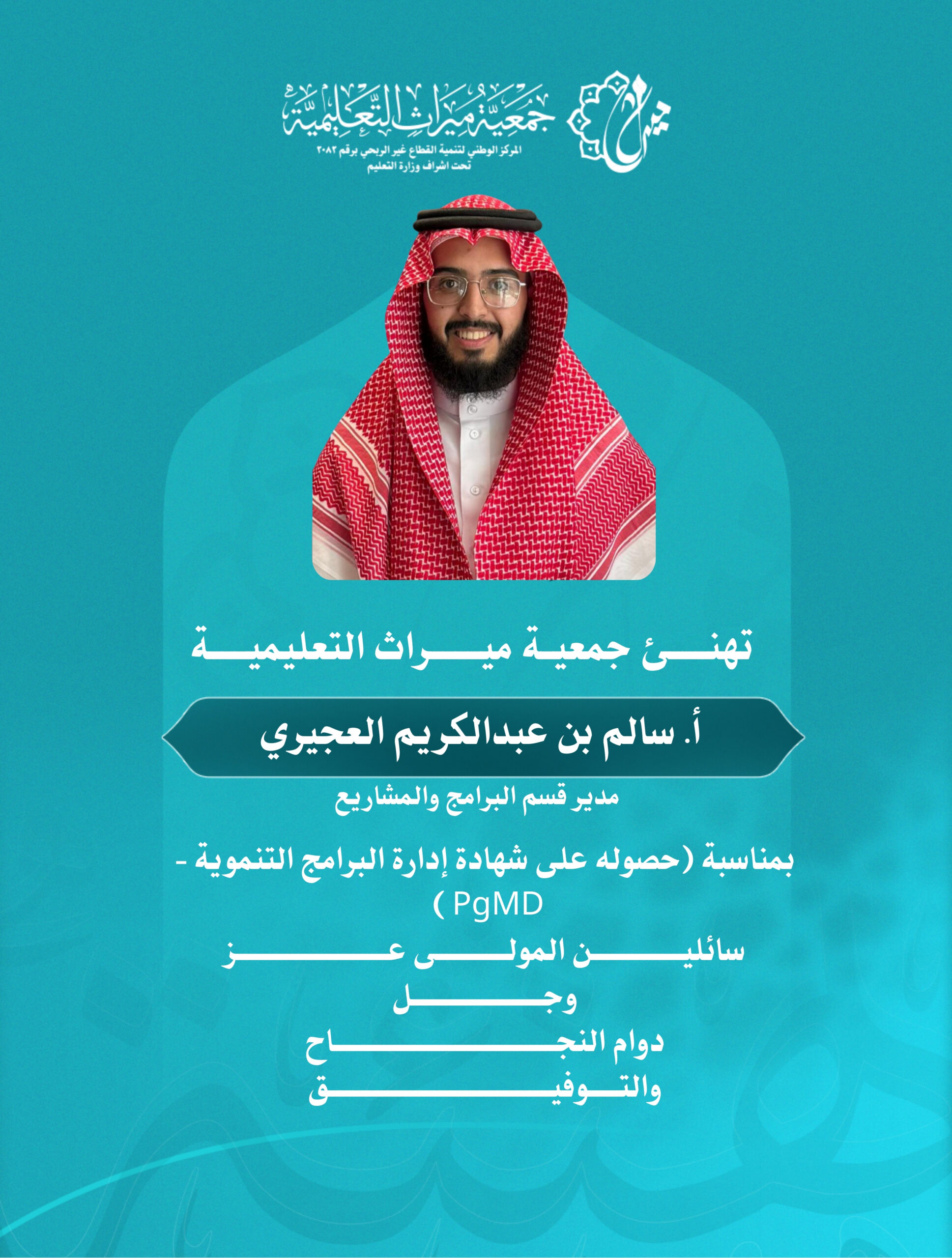 جمعية ميراث تُشيد بإنجاز الأستاذ سالم العجيري بحصوله على شهادة إدارة البرامج التنموية (PgMD)